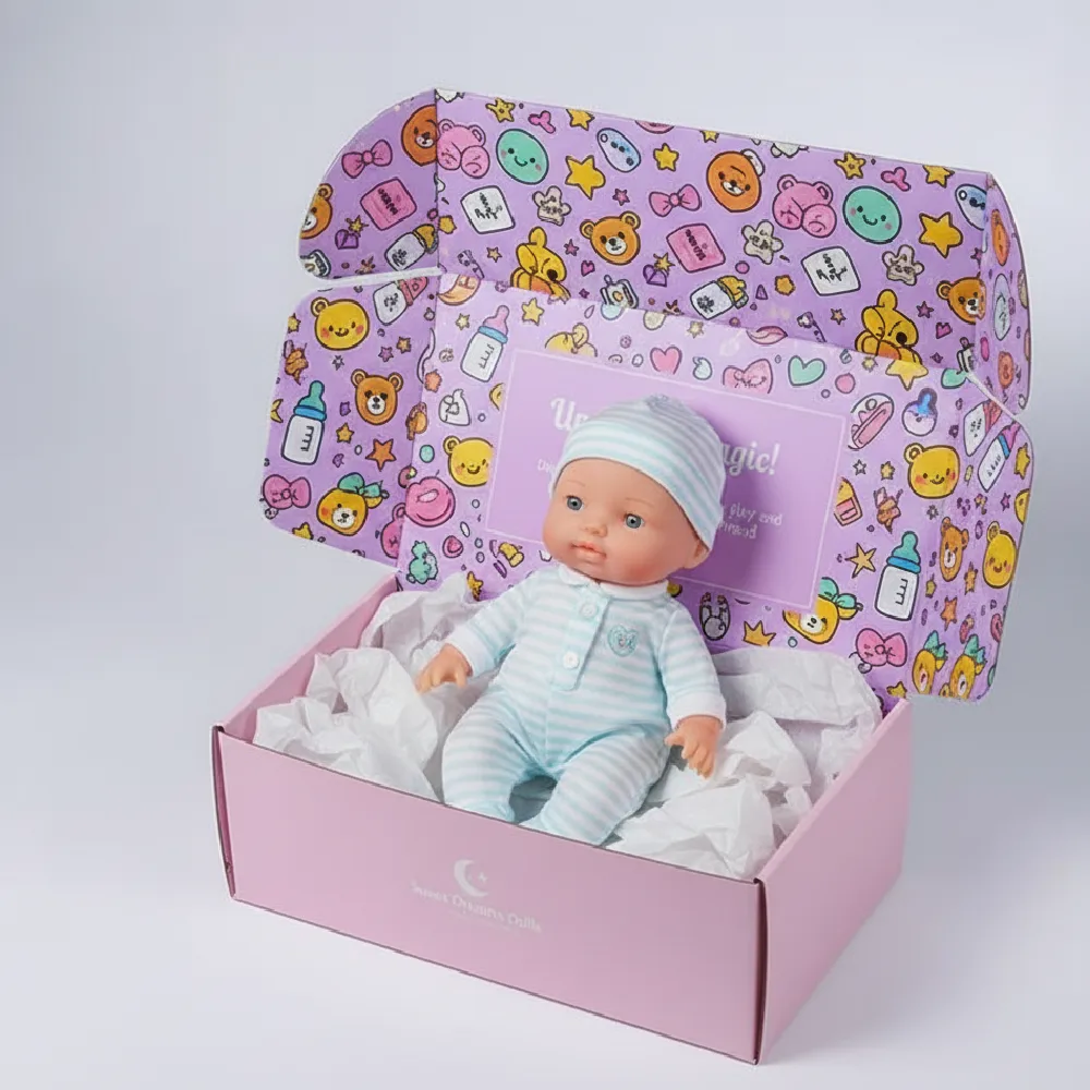Absolutely! The material you choose plays a huge role in making your Baby Doll Packaging Boxes stand out. Texture and finish affect how your designs come to life. For example, darker materials or matte textures create a softer, more subtle look for printed images and text, while glossy or lighter materials make them vibrant and bold, adding that extra wow factor.