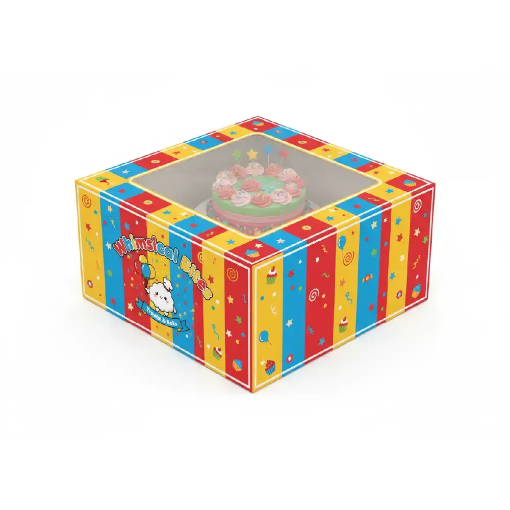 PackagingShelter caters to both fresh-baked goods and retail cake mix brands, ensuring your products shine from bakery counters to customer doorsteps. For retail brands selling red velvet, chocolate, or vanilla cake mixes, our boxes are designed to tempt shoppers with vibrant imagery, clear instructions, and nutritional facts printed in engaging styles. Choose from PMS or CMYK colors and customize font sizes for a professional look. Shapes like pyramids or tapered tops add a unique flair, grabbing attention on retail shelves and encouraging impulse buys. Our premium paperboard and kraft materials protect cake mixes from store handling and transit damage, while eco-friendly kraft options highlight your brand’s sustainability. With flexible structural layouts and printing options, your retail cake boxes will outshine competitors and boost sales.
