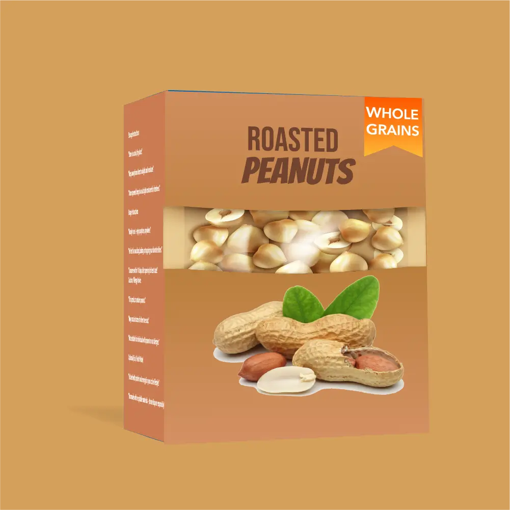 Turn heads with PackagingShelter’s visually stunning roasted peanut boxes. Vibrant colors, creative patterns, or unique illustrations make your product pop on shelves. Collaborate with our design team for limited-edition looks inspired by cultural themes or seasonal vibes, adding a collectible flair. Add transparent windows to showcase your peanuts’ quality, enticing customers and boosting appeal with a premium, artistic touch.